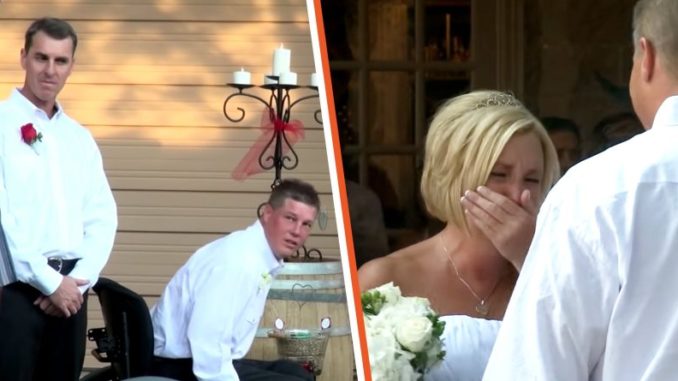 On their wedding day, Kim looked stunning in a white gown as she took her father’s hand and began walking down the aisle. Just then, she saw something that baffled her—her fiancé had left his wheelchair and was walking in her direction. While fighting back the tears, Kim recounted: