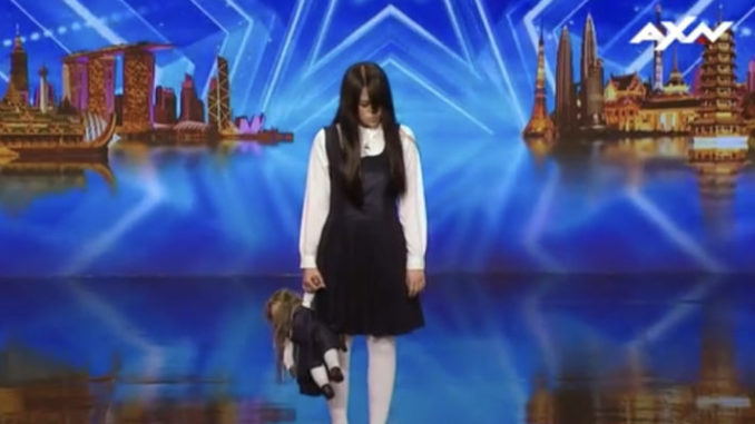 When this very talented magician stepped on stage the judges were shocked straight away. Dressed in what looks like a very dark school uniform, and carrying an extremely creepy doll, the exponent of one of the oldest art forms known to man did not say a word, instead she dropped her doll and went straight into her act. As she approached the judges panel, two of them immediately got up to leave, so frightening and bizarre was the dark-yet-mystifying-presence of the strange young girl.